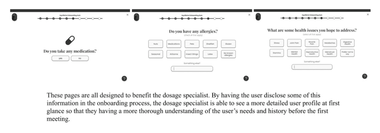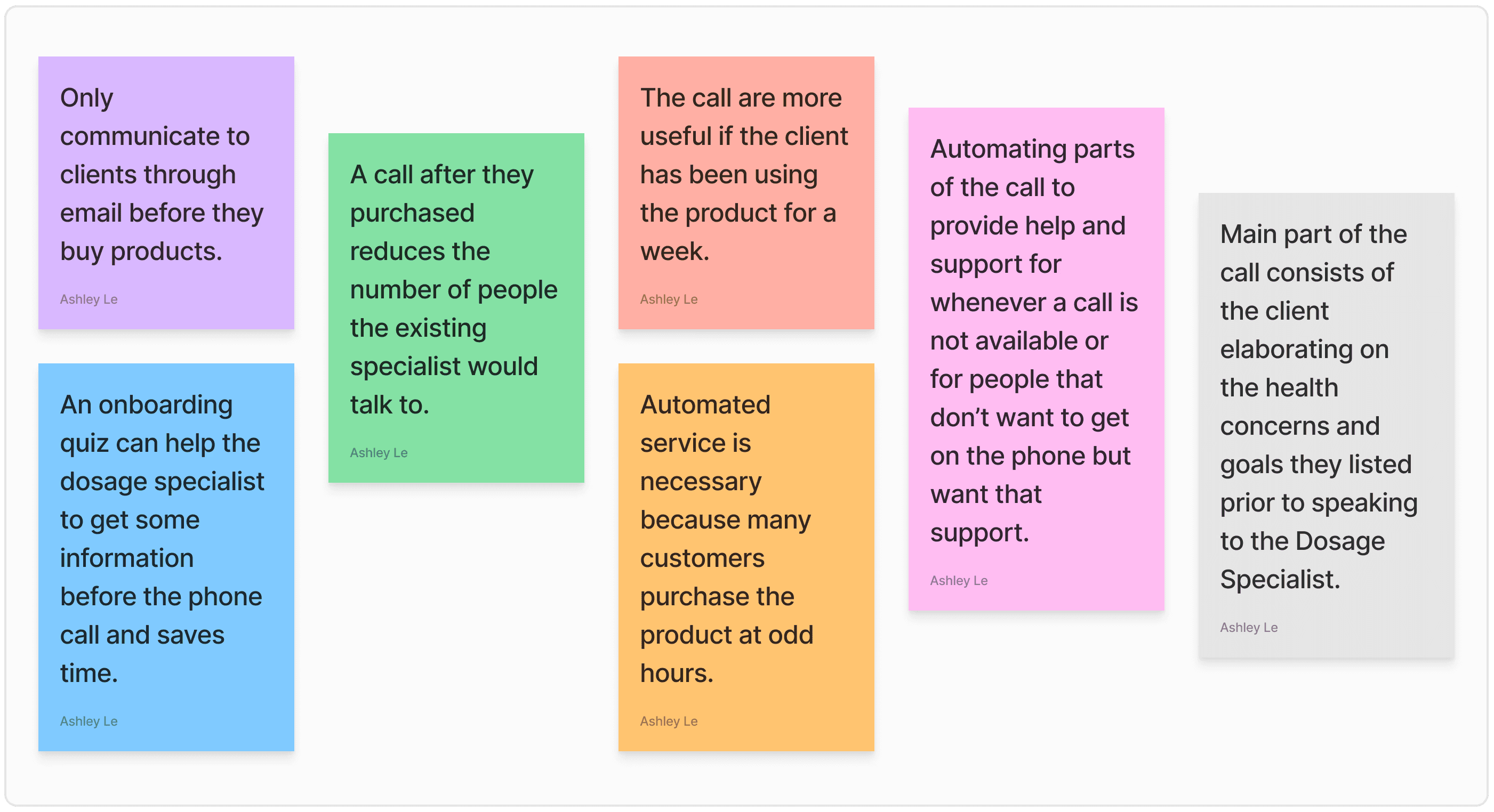 We spent most of the time think of what information we need to collect during the onboarding quiz to get as much information as possible so that dosage specialist can help customers with right products.
