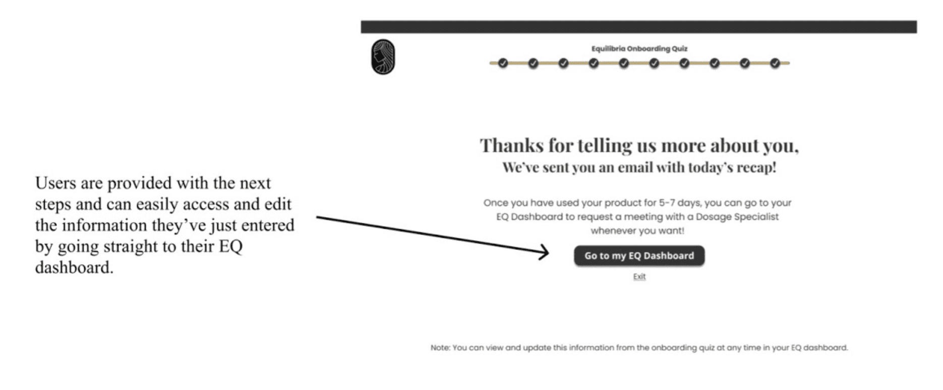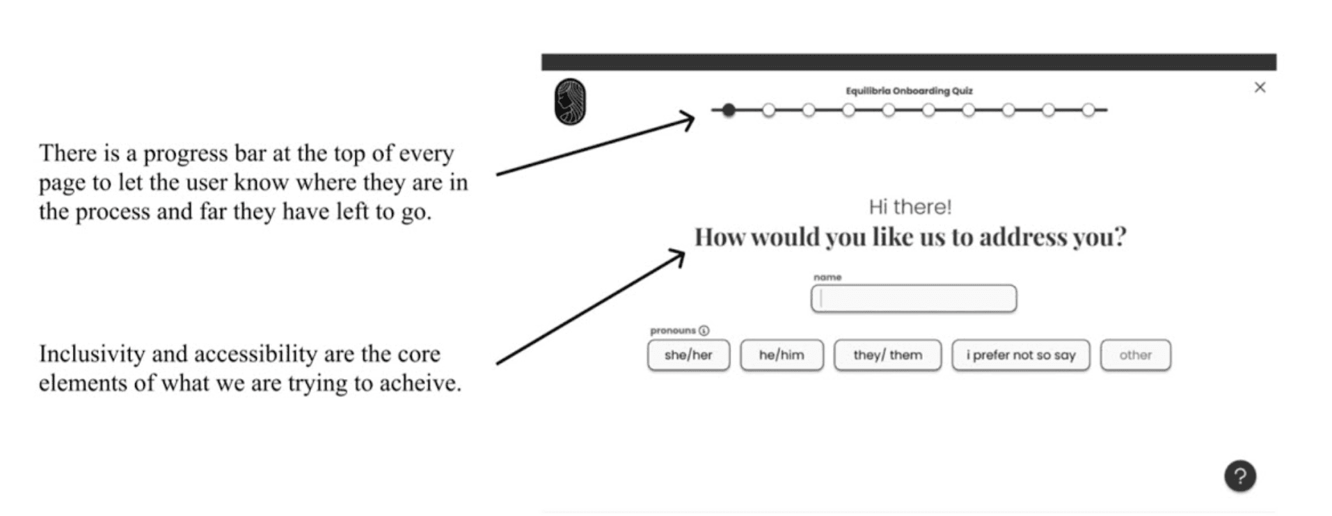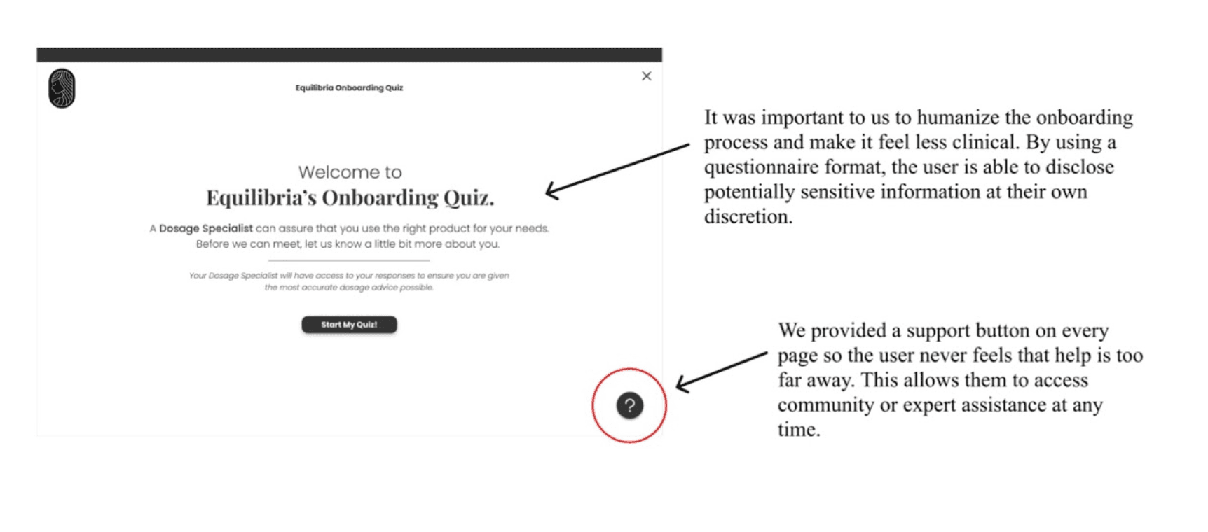 During the research, we gathered that an onboarding quiz would be the best approach to create a stronger personalized connection with brand Equilibria.