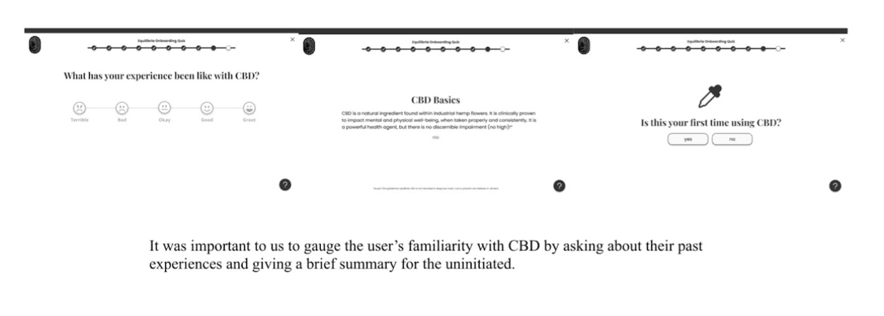 Equilibria is a company that provides personalized CBD products and services for women. In my UX senior capstone, I was in a team of 6 designers proposed an onboarding quiz for Equilibria.